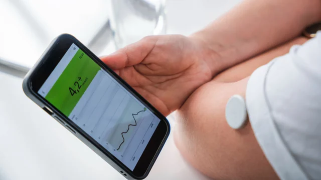 Ein Blutzucker-Sensor ist ein kleines Gerät, das am Oberarm getragen wird. Es misst kontinuierlich den Blutzucker. Die Werte werden automatisch an ein Lesegerät oder Smartphone übertragen. Dadurch müssen sich Betroffene nicht ständig in den Finger stechen, um ihre Blutzuckerwerte zu kennen. Sie haben ihre Werte jederzeit im Blick und können so ihre Insulintherapie steuern.