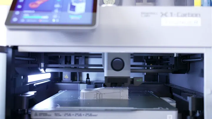 Für einen effizienten Druck werden sogenannte Blueprints, also detaillierte Baupläne, benötigt. Das Glück will es, dass es auch für das Ersatzteil des Wassersprudlers im Internet einen Bauplan gibt. So einfach geht das aber nicht immer. Nach rund zweieinhalb Stunden ist der Druck fertig.