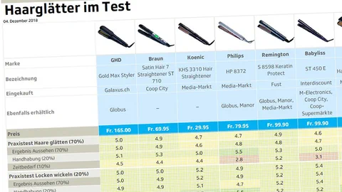 Alle Haarglätter schneiden mit dem Gesamturteil «gut» oder «genügend» ab. Allerdings waren einige Probandinnen mit dem Satrap Liss 2 von Coop unzufrieden: «Das Gerät fasste die Haare nicht richtig. Und wenn es mal gefasst hat, sind auch Haare mitgerissen worden», sagt etwa Testerin Maxi Hörner. «Die Spitzen werden nicht so schön weich. Und die Haare stehen ab.» So erreiche sie nicht den Look, den sie sich wünscht. Note 4,3.