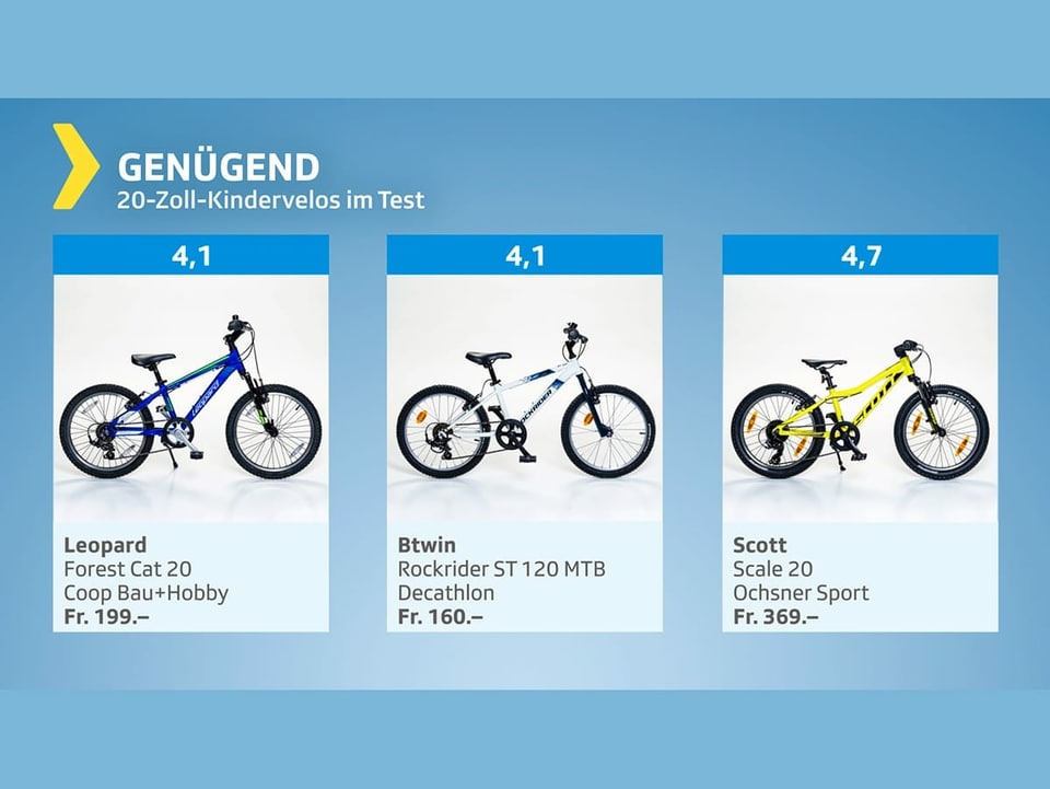 Bewertet wurden vielverkaufte Velos von Fachhandel und Grossverteilern der Radgrösse 20 Zoll, also für Kinder von etwa sechs bis neun Jahre. Das günstigste Modell kostet 160, das teuerste 749 Franken.