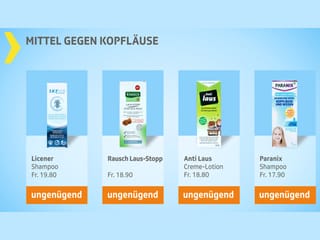 Bild 2 von 4. Auch diese Läusemittel erfüllten die Testkriterien ebenfalls kaum. Bildquelle: SRF.