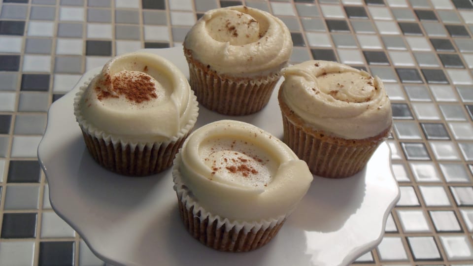 - Die Cupcakes nun mit der Creamcheese-Haube versehen und mit etwas Zimt dekorieren.