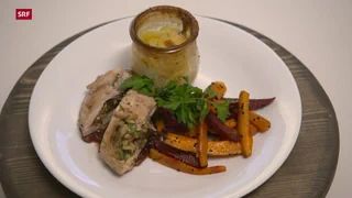 Manuela punktet bei ihren Gäste mit einer gefüllten Pouletbrust mit Dörrzwetschgen, Ofengemüse und Kartoffelgratin