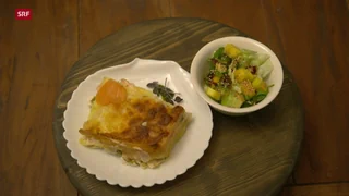 Miriam punktet bei ihren Gäste mit einer Lasagne mit Lachs und Spargel und frischem Beilagensalat.