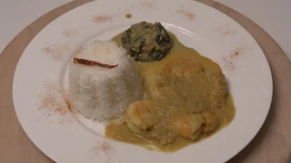 Marco überzeugt seine Gäste mit Garnelen in Kokosmilch, Reis mit indischen Gewürzen und gebratenem Spinat mit Zwiebeln