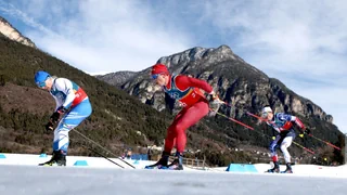 Im olympischen Teamsprint belegen die Langläufer Valerio Grond/Janik Riebli bei Norwegens Triumph den 4....