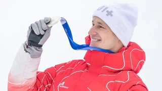 Loïc Meillard gewinnt im Riesenslalom an Olympia Bronze.