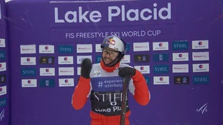 Der Sprung von Noé Roth beim letzten Aerials-Weltcup des Winters in Lake Placid.