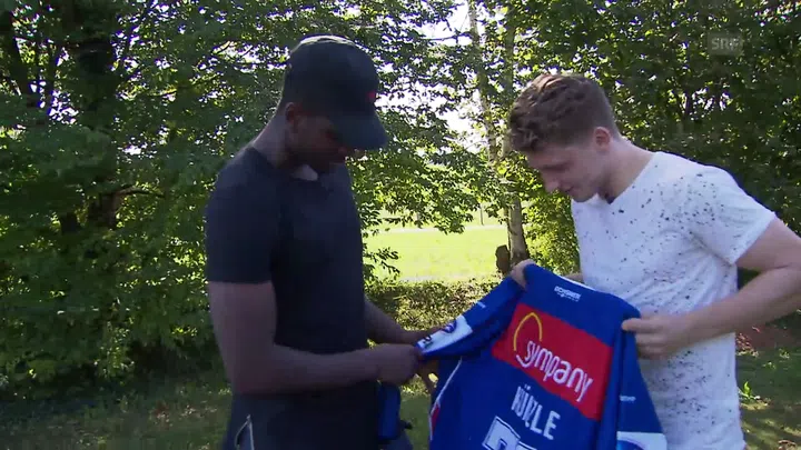 Auch bei Dave Sutter gibt es eine besondere Geschichte zu seinem Trikot. Denn Sutters richtiger Name ist eigentlich Ntamack. Der 25-Jährige spielt mit dem Namen seines Stiefvaters. Er will so etwas zurückgeben, erklärt er Künzle. Doch sein «falscher» Name bringt zwischenzeitlich auch Probleme.