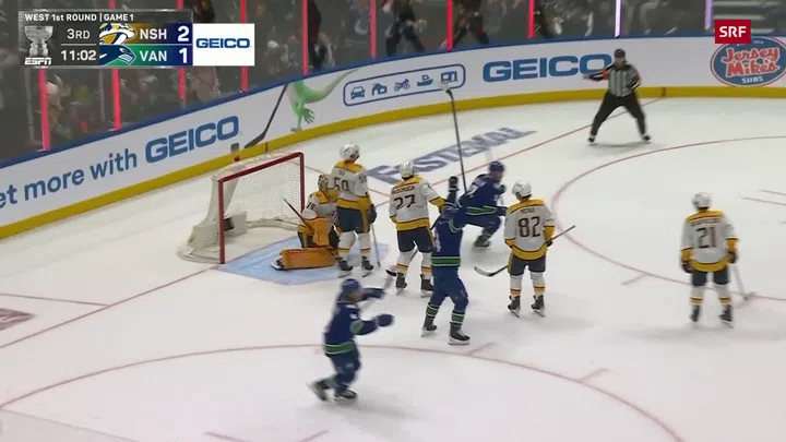 Im Schweizer Playoff-Duell zwischen Pius Suter und Roman Josi haben Suters Canucks vorgelegt. Vancouver gewann das erste Spiel der Achtelfinalserie gegen die Nashville Predators 4:2. Zweimal gerieten die vor heimischem Publikum spielenden Kanadier in Rückstand, konnten aber jedes Mal reagieren. Suter feierte dabei nicht nur seine Playoff-Premiere, er erzielte per Ablenker auch den Treffer zum zwischenzeitlichen 2:2.
