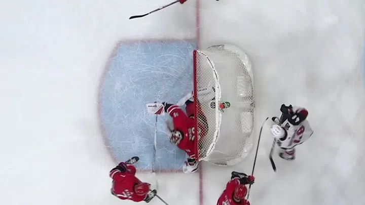Die Schiedsrichter halfen zunächst den Puck zu entfernen, ehe sie richtigerweise auf Tor entschieden.