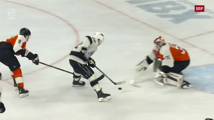 Nach 3 Partien ohne Skorerpunkt, unter anderem in seinem 600. NHL-Spiel, schaffte es Kevin Fiala in der Nacht auf Freitag wieder auf das «Scoresheet». Der St. Galler Stürmer eröffnete beim Gastspiel seiner Los Angeles Kings in Philadelphia in der 11. Minute den Torreigen mit einem eleganten Dribbling gegen den gegnerischen Goalie.