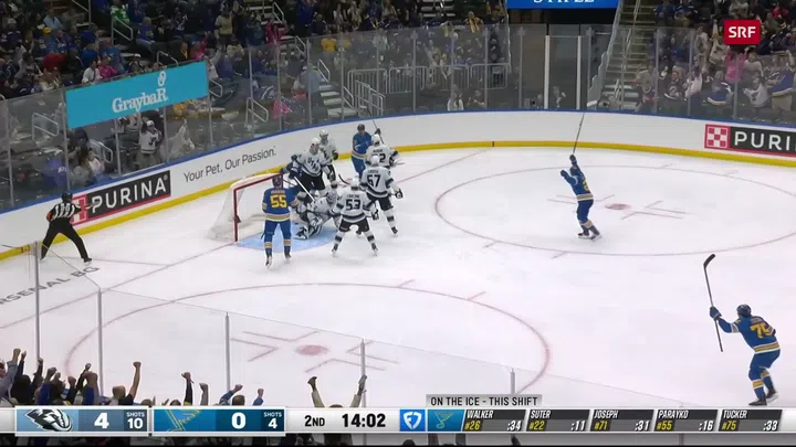Beim 4:7 zwischen den St. Louis Blues und den Utah Mammoth erzielte Pius Suter in der 26. Minute das 1:4. Mit seinem dritten Saisontor lancierte der Zürcher Stürmer eine Aufholjagd. Das Heimteam kam nochmals auf 4:5 heran, konnte die vierte Niederlage im siebten Saisonspiel jedoch nicht verhindern.