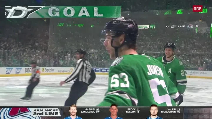 Wyatt Johnston mit dem fünftschnellsten Treffer der Playoff-Geschichte nach nur neun Sekunden sowie Thomas Harley (20.) und der frühere Colorado-Profi Mikko Rantanen (22.) sorgten für eine 3:0-Führung. Innerhalb von 104 Sekunden zogen die Dallas Stars in der Schlussphase des zweiten Abschnitts von 3:2 auf 5:2 davon, nachdem Colorado ebenfalls im zweiten Drittel innerhalb von 147 Sekunden mit zwei Toren auf 2:3 verkürzt hatte.