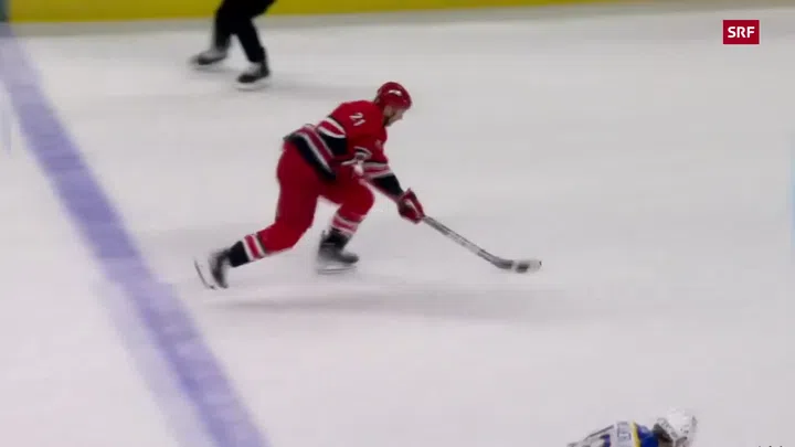 Nino Niederreiter erzielt beim 1. Sieg der Hurricanes nach zuletzt 3 Niederlagen 1 Tor und 1 Assist. Zusammen mit seinen finnischen Sturmpartnern Sebastian Aho (3 Assists) und Teuvo Teräväinen (2 Tore) prägte Niederreiter die Partie.