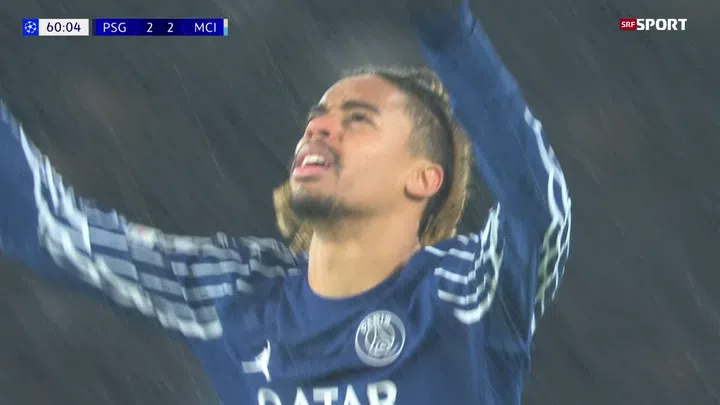 In der Folge beruhigte sich das Spiel wieder. Bis PSG in der 78. Minute einen Freistoss aus halbrechter Position zugesprochen bekam. Vitinha trat diesen zur Mitte, wo der Ball an der City-Abwehrkette vorbeiflog und zielgenau auf den Kopf Joao Neves' zusteuerte, der völlig frei zum vielumjubelten 3:2 einnicken konnte.