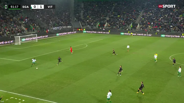 Fussball kann so einfach sein. Wie einfach, zeigte Vitoria Guimaraes im Conference-League-Duell mit St. Gallen in der 58. Minute: Zuerst ein Pass in die Tiefe, dann eine flache Hereingabe ins Zentrum – und drin war der Ball. Mit dem 2:0 durch Gustavo Silva verstummte die grosse Mehrheit im rappelvollen Kybunpark.