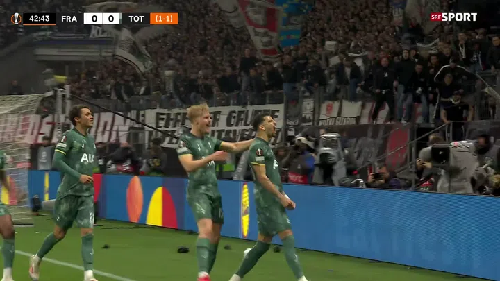 Zum Ende der Partie rollte eine Angriffswelle nach der anderen auf das Tor der englischen Gäste zu. Doch immer wieder vergaben die Frankfurter den Ausgleich. So jubelte nach dem Abpfiff Tottenham über einen knappen 1:0-Auswärtserfolg. Das einzige Tor der Partie erzielte Dominic Solanke kurz vor der Pause per Elfmeter. Eintracht-Keeper Kaua Santos hatte Gegenspieler James Maddison mit voller Wucht abgeräumt und so den Penalty verursacht. Für Frankfurt platzt damit der Traum vom zweiten Europa-League-Titel, für Tottenham könnte eine in der Meisterschaft völlig missratene Saison doch noch mit einem Triumph enden.