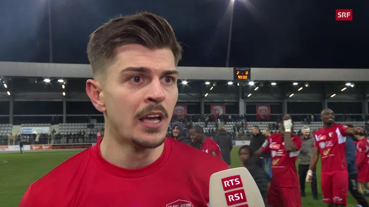 Nach dem grossen Coup gegen den Super-League-Klub Lugano lagen sich die Bieler Spieler in den Armen und liessen sich von den Zuschauern feiern. Einer, der sein Glück kaum fassen konnte, war Omer Dzonlagic.