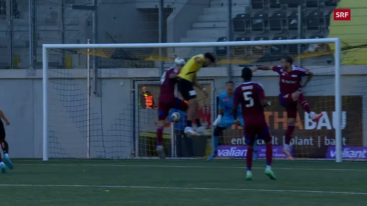 - 53. Minute: Pechvogel Severin steigt nach einem Eckball am höchsten, sieht seinen Kopfball aber durch eine Glanzparade von Schaffhausens Gianni de Nitti pariert.