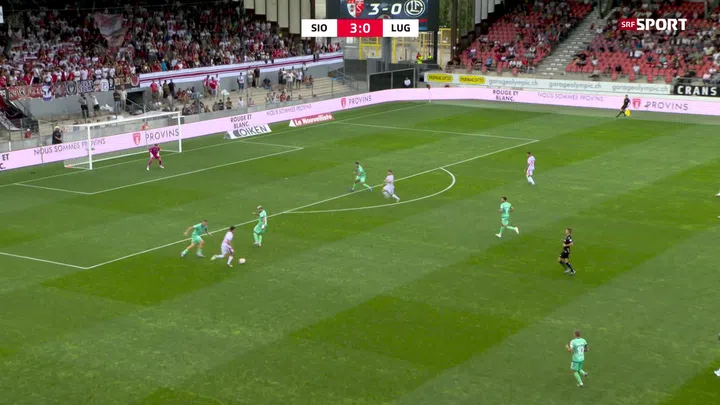 Beim 3:0 durch Benjamin Kololli nach genau einer Stunde standen im Strafraum zwar nicht weniger als 4 Luganesi um den ballführenden Spieler, doch keiner hinderte ihn ernsthaft am Torschuss. Unmittelbar danach landete ein Schuss des eingewechselten Elias Pihlström nur am Sittener Pfosten (62.). So sorgte 10 Minuten vor dem Ende Rilind Nivokazi, der letztjährige Challenge-League-Torschützenkönig, mit seinem 4:0 für den Schlusspunkt.