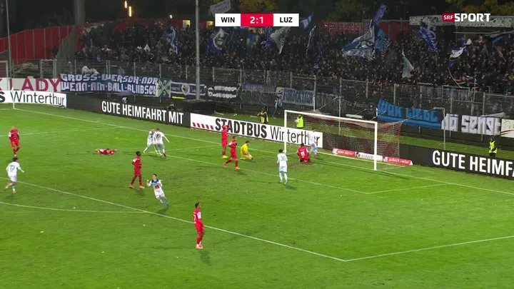 In der 91. Minute gelangte der Ball im Winterthur-Sechzehner vor die Füsse von Sinan Karweina. Den Flachschuss des Deutschen wehrte FCW-Goalie Stefanos Kapino mit dem Fuss ab, allerdings prallte der Ball genau an die Brust von Souleymane Diaby und von da zum Eigentor in den verwaisten Winterthurer Kasten. Im Anschluss drückten die Gäste gar noch auf das 3:2-Siegtor, noch mehr Ungemach blieb Winterthur jedoch erspart.