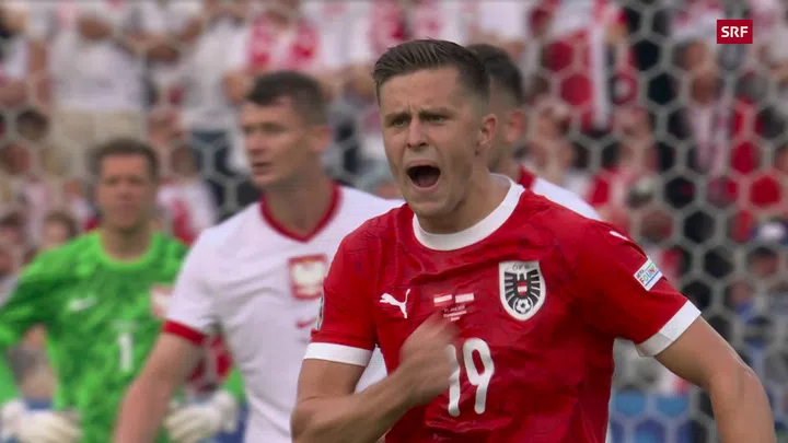 - Österreich schlägt Polen in der Gruppe D an der EURO 3:1 und holt im 2. Spiel einen wichtigen Sieg.