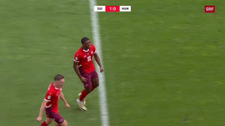 - 12. Minute: Aebischer läuft sich zwischen den Linien frei und bedient Duah mit einem herrlichen Steilpass. Zunächst wird der Treffer wegen einer vermeintlichen Offsideposition aberkannt. Nach VAR-Intervention gibt Schiedsrichter Slavko Vincic das Tor aber. Es steht 1:0 für die Nati.