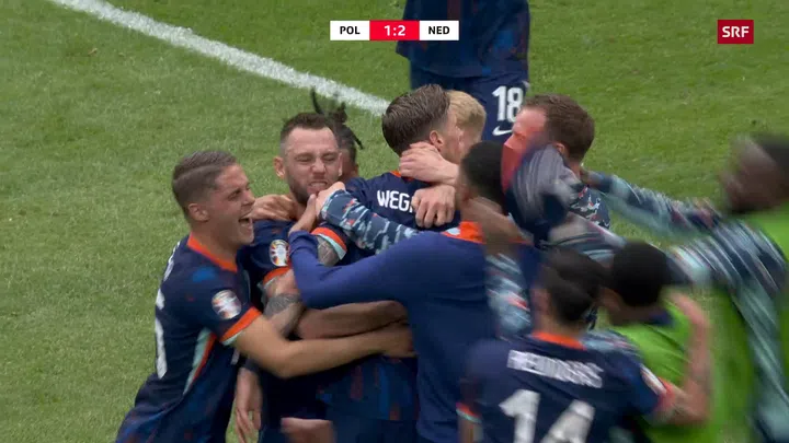 - Die Niederlande gewinnen das Auftaktspiel der Gruppe D an der EURO gegen Polen mit 2:1.
