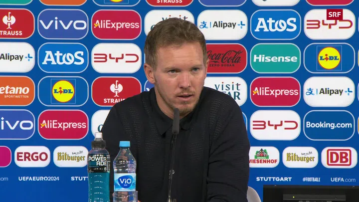 - Julian Nagelsmann: «Es sind Tränen geflossen. Joshua Kimmich hat geredet, ich habe auch noch ein paar Worte gesagt. Es war heute nicht verdient, und der Schiedsrichter hat auch ein bisschen für Spanien gepfiffen. Was uns trösten kann, ist, dass wir gemeinsam wieder schöne Momente mit der Nationalmannschaft hatten. Die Fans haben uns wirklich gepusht. In der Verlängerung waren wir nah dran, wir hatten drei Riesendinger. Der Schuss bei der umstrittenen Szene ist sehr gut, der geht wahrscheinlich sogar rein. Das ist ein klarer Elfmeter.»