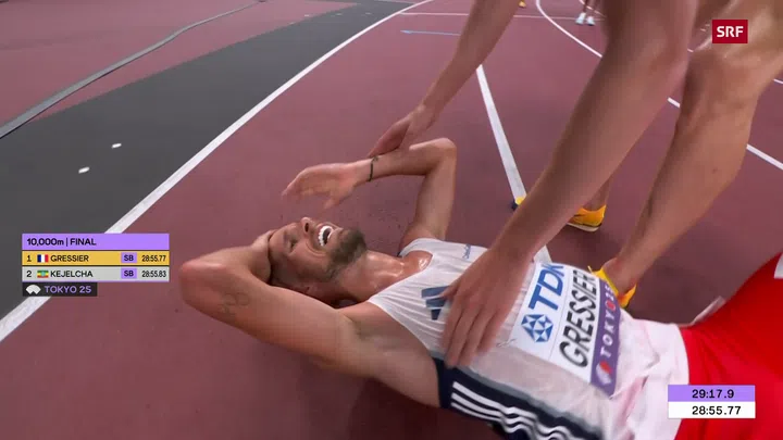 Dominic Lobalu ist an der WM in Tokio über 10'000 m wie erwartet chancenlos. Den Titel sichert sich überraschend der Franzose Jimmy Gressier. Es war zu sehen, dass der im heutigen Südsudan geborene Lobalu nach einer Mitte August erlittenen Zerrung im Oberschenkel weit von der Bestform entfernt war. Der 27-Jährige musste in der zweitletzten Runde abreissen lassen. Letztendlich schaute in 29:11,65 Minuten Rang 14 heraus. Gold sicherte sich in 28:55,77 Minuten Gressier. Der 28-Jährige fing auf den letzten Metern den Äthiopier Yomif Kejelcha noch ab. Bronze ging mit dem Schweden Andreas Almgren an einen weiteren Europäer.