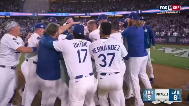Die Los Angeles Dodgers sind in der World Series gegen die Toronto Blue Jays erstmals in Führung gegangen. Nach 18 Innings und fast 7 Stunden Spielzeit gewannen die Kalifornier mit 6:5 und führen in der Best-of-7-Finalserie der Major League Baseball nun mit 2:1.