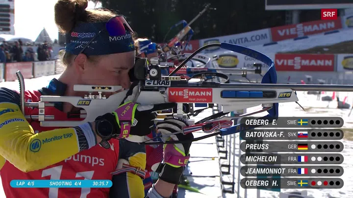Die Schweizerinnen verpassten im letzten Saisonrennen die Spitzenplätze. Amy Baserga lief mit 3 Schiessfehlern auf Rang 14. Lena Häcki-Gross vergab beim letzten Stehendanschlag mit drei Fehlschüssen einen Top-10-Platz und wurde 22. Aita Gasparin (5 Fehler) klassierte sich auf Rang 24.