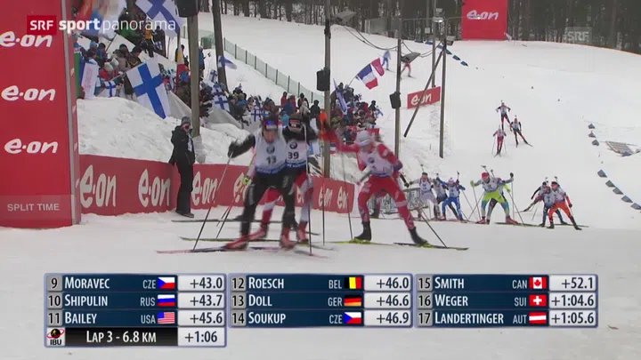 Die weiteren Podestplätze belegten Anton Schipulin (Russ) und Tarjei Bö. Der Norweger holte damit in Finnland im 3. WM-Rennen zum 3. Mal eine Medaille – und abermals ist es der 3. Rang geworden.