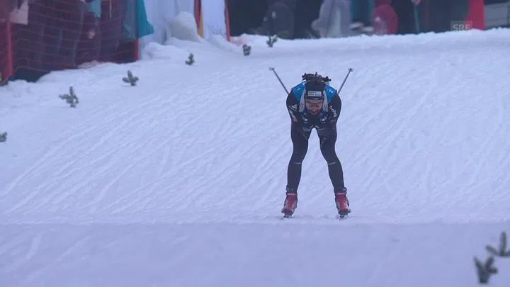 Den Sieg sicherte sich wie am Vortag der Franzose Martin Fourcade. Die weiteren Podestplätze hinter dem nun viermaligen Saisonsieger gingen an die Bö-Brüder Johannes Thingnes und Tarjei aus Norwegen. Der Genfer Jeremy Finello klassierte sich im 30. Rang. Um sich das Olympia-Ticket zu sichern, braucht er noch eine zweite Klassierung unter den ersten 25. Auch Serafin Wiestner gewann als 37. noch Weltcup-Punkte.