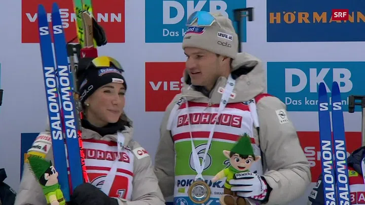 - Niklas Hartweg und Aita Gasparin laufen in der Single-Mixed-Staffel in Pokljuka sensationell zum Sieg.