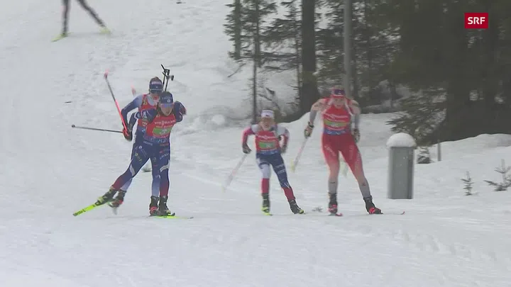 An der Spitze setzte sich Schweden in der Person von Sebastian Samuelsson beim letzten Schiessen ab und feierte einen souveränen Sieg. Frankreich (+14,8 Sekunden) und Norwegen (+20,0) liefen dahinter auf das Podest.