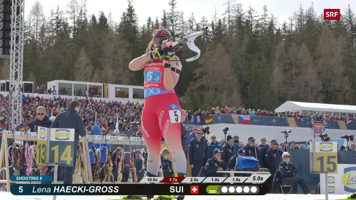 Baserga und Aita Gasparin, die mit 10 Treffern bei 10 Schüssen überzeugte, führten die Schweiz im Anschluss wieder auf Platz 9 nach vorne. Schlussläuferin Lena Häcki-Gross drückte dann mächtig aufs Tempo und ging «All In».