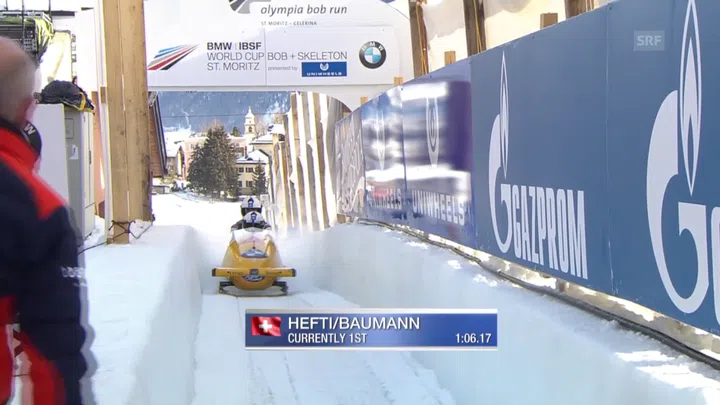 Hefti/Baumann, die den 1. Lauf mit der hohen Startnummer 16 in Angriff genommen hatten, lagen auf dem Olympia-Bobrun in Celerina von Beginn weg an der Spitze. Dem 38-Jährigen und seinem Anschieber gelang auf der Natureisbahn insbesondere im ersten Teil eine ausgezeichnete Fahrt.