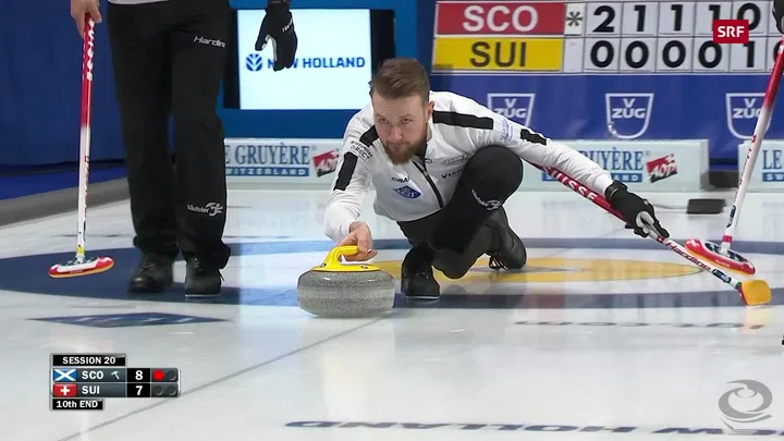 Trotz einer 7:9-Niederlage im letzten Vorrunden-Spiel gegen Schottland erreichen die Schweizer Curler an der WM in Las Vegas die Qualifikationsspiele für den Halbfinal. Das Team um Skip Yannick Schwaller bekommt unverhofft Hilfe von den Niederländern, die – nach einem Zusatzend – überraschend gegen Südkorea gewinnen.