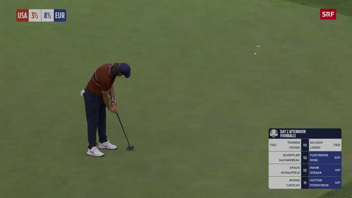 In den «Foursomes» (zwei Spieler eines Teams schlagen den Ball abwechselnd) entschieden der Nordire Rory McIlroy und der Engländer Tommy Fleetwood ihr Duell gegen das US-Duo Harris English/Collin Morikawa schon nach 16 Löchern für sich. Dasselbe schafften Jon Rahm/Tyrrell Hatton (ESP/ENG).