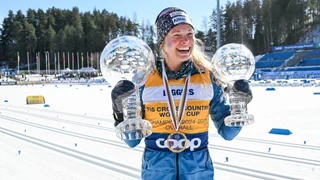 Jessie Diggins siegt über 20 km Skating und holt den Gesamtweltcup. Johannes Kläbo nützt der 7. Sieg in Folge nichts.