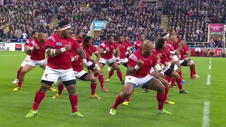 Die Kriegstänze der ozeanischen Teams gehören an der Rugby-WM zu den grossen Attraktionenen. Die Spieler aus Tonga schöpften aus ihren innbrünstigen «Sipi Tau» jede Menge Energie und konnten die übermächtigen «All Blacks» vor der Pause mehr als nur ein bisschen ärgern - auch wenn es knapp nicht zu einem Versuch reichte (3:14).