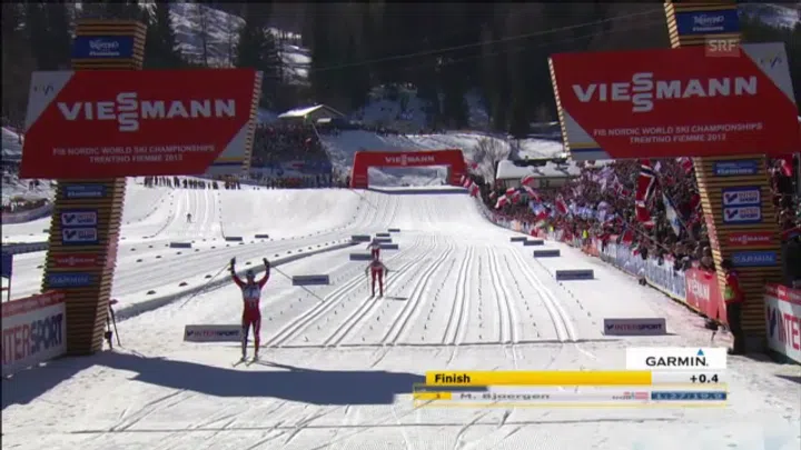 Marit Björgen verfügte im Schlusssprint auf der Zielgeraden über die grösseren Kräftereserven und liess Justyna Kowalczyk keine Chance. Für die bald 33-Jährige ist es bereits die 12. WM-Goldmedaille, die 4. im Val die Fiemme.