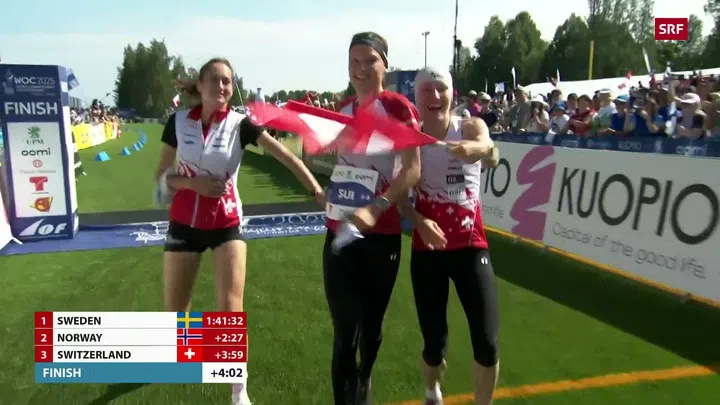 - Die Frauen-Staffel mit Paula Gross, Natalia Gemperle und Simona Aebersold holt an der OL-WM in Kuopio Bronze.