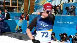 Der Schweizer zeigt im Super-G Standing keine perfekte, aber die schnellste Fahrt. Es ist schon sein 2. Gold in Cortina.