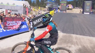 Downhillerin Camille Balanche fährt bei ihrem letzten Rennen auf heimischem Boden in Lenzerheide auf den 8. Rang.