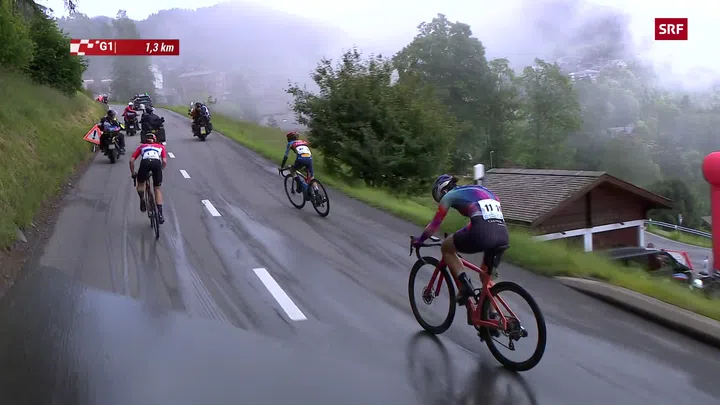Chabbey hatte bereits nach 6 Rennkilometern – und rund 1000 Meter vor der Passhöhe auf dem Col de la Croix – das Weite gesucht und ihre Solofahrt nach dem Kulminationspunkt unbeirrt fortgesetzt. In der langen Abfahrt hinunter nach Aigle baute Chabbey ihren Vorsprung auf rund 1:30 Minuten aus.