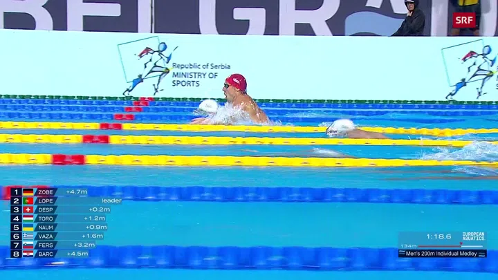 Die letzten Medaillenentscheidungen an der Schwimm-EM in Belgrad werden am Sonntag mit Schweizer Beteiligung über die Bühne gehen. Dies, weil am vorletzten Wettkampftag Jérémy Desplanches als 2. seines Halbfinals über 200 m Lagen souverän den Final erreichte.