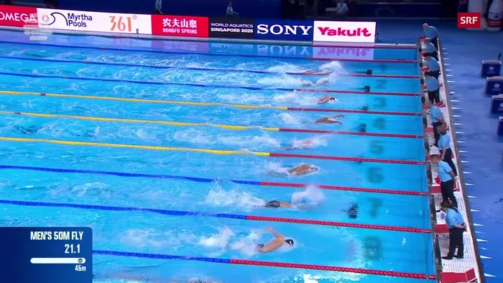 - Noè Ponti übersteht an der WM in Singapur den Vorlauf und den Halbfinal über 50 m Schmetterling souverän.